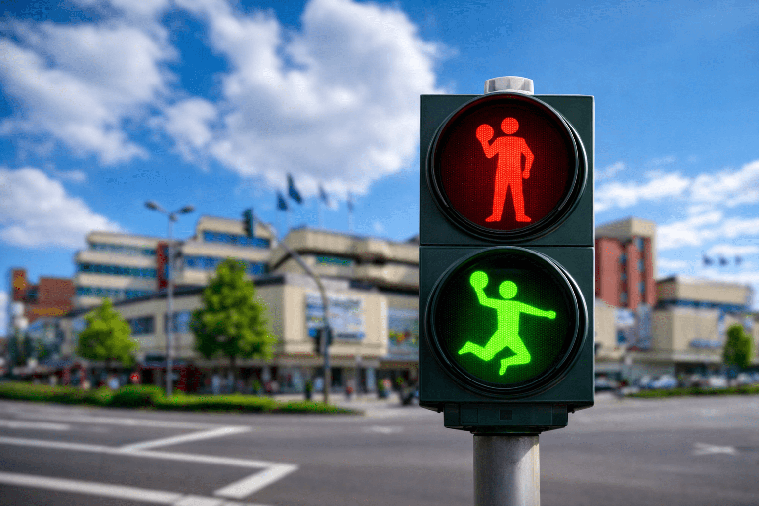 Handballer als Ampelmännchen könnten künftig das Stadtbild prägen. In Anlehnung an die klassische Ampelfigur soll ein Handballer zu sehen sein – bei Rot wartend mit Ball, bei Grün im Sprungwurf. Eine Petition setzt sich dafür ein, dieses besondere Symbol an ausgewählten Fußgängerampeln zu verwirklichen.
